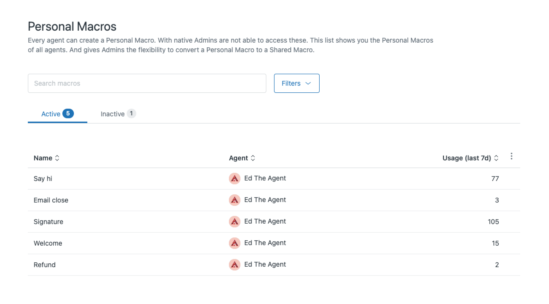 Agents use Macros all the time to have more efficient conversations. With Macro Usage you now also know how agents are using those Macros.